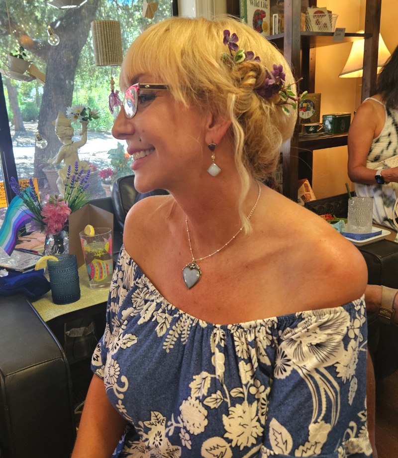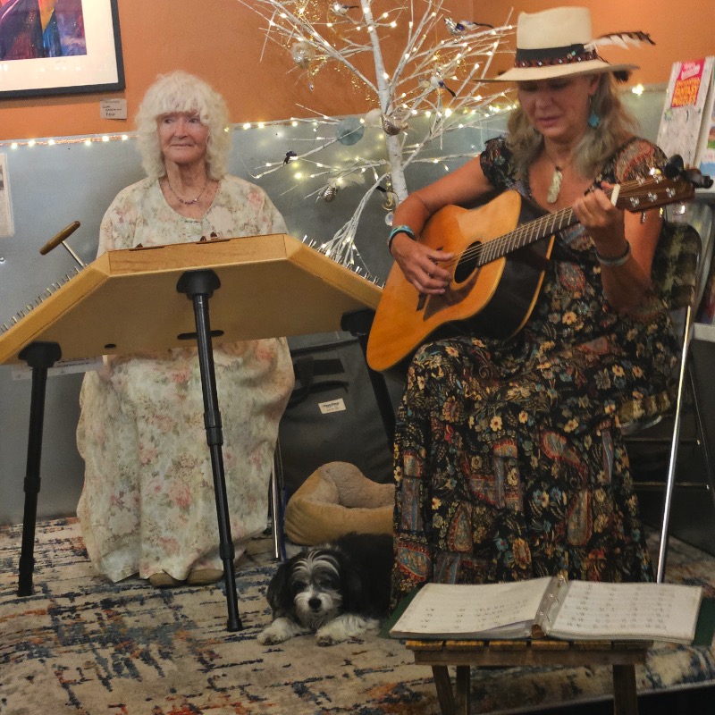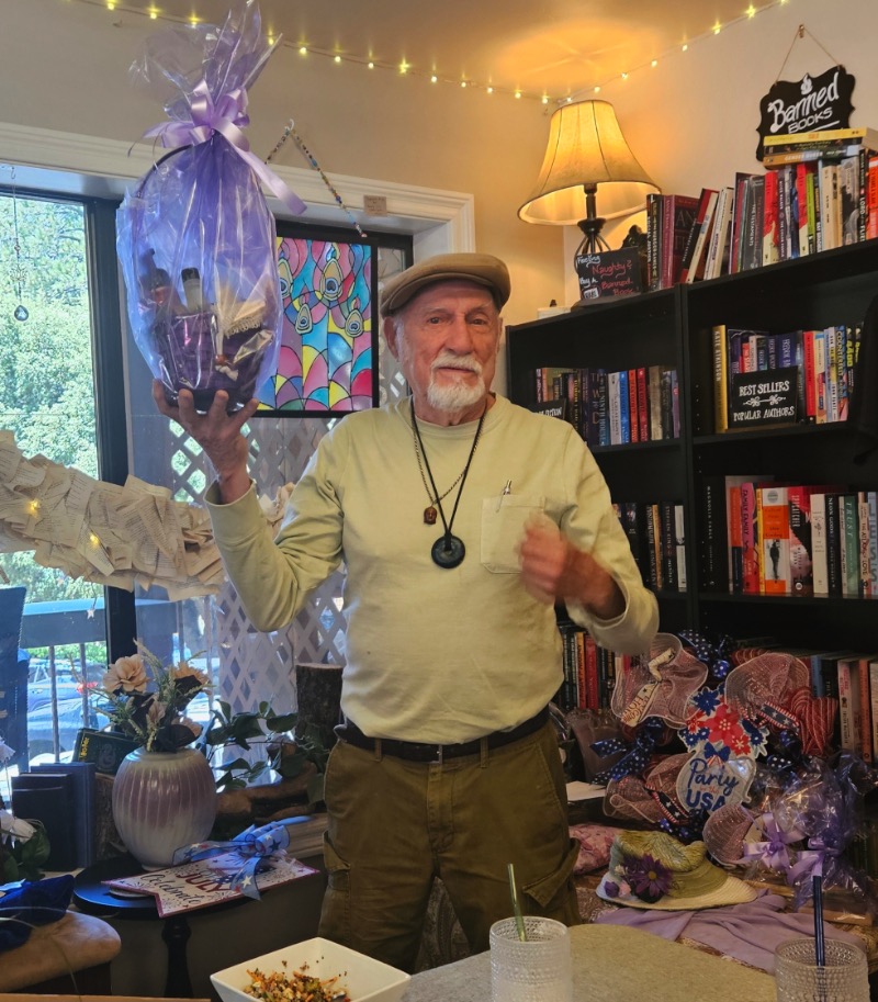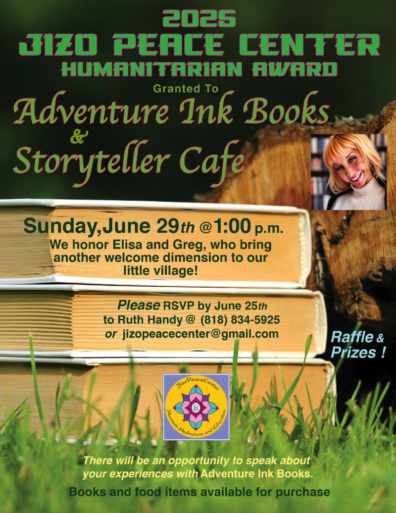 At the end of June, the 29th, the Center held the 15th Humanitarian Award Ceremony granted to the generous Elisa Christiansen, who has taken over the Adventure Ink Bookstore and Storyteller's Cafe and made it an imaginative place (photo by Elke). There were great raffle prizes organized and presented by Ed Serra.